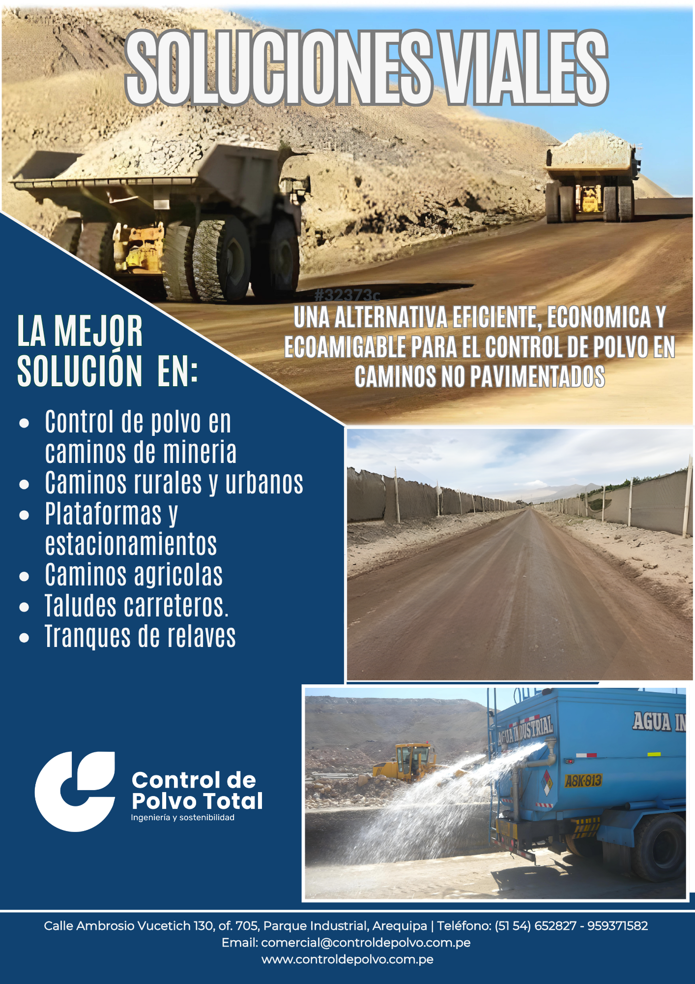 Provisión de productos químicos y naturales para estabilización y supresión de polvo.